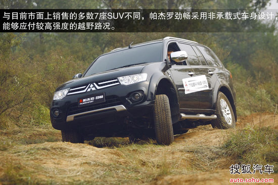 與目前銷售的漢蘭達(dá)等傾向城市實用的7座SUV不同,帕杰羅勁暢始終保持了能夠應(yīng)付較高越野強度的設(shè)計。國產(chǎn)版本仍然使用了非承載式車身,前雙橫臂配后三連桿螺旋彈簧的懸掛組合,車身強度足以應(yīng)付多數(shù)越野路況。