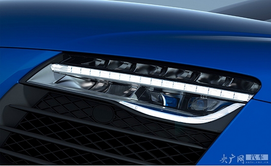 奧迪R8 LMX被形容為“世界上第一部配備激光遠(yuǎn)光燈的量產(chǎn)車”,其激光頭燈內(nèi)部帶有四個高能量的鐳射二極管,可以投射出色溫在5,500開爾文的白光,該光束會在60公里/小時的情況下開啟,為“車輛的可視性和安全性”帶來極大的加強(qiáng)。