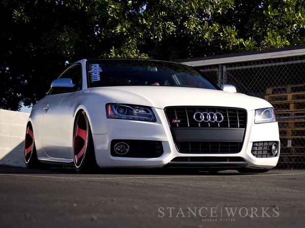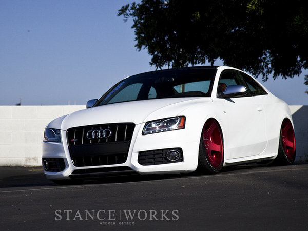 動感設(shè)計與卓越性能完美結(jié)合的奧迪S5,作為奧迪家族全新的一個系列車型,它憑借著能夠讓人心潮澎湃的動力性能與有著流暢線條設(shè)計的優(yōu)雅外形,吸引著廣大車迷的目光,今天我就為大家?guī)硪豢罡难b了醒目的紅色rotiform輪轂的奧迪S5,下面讓我們來欣賞下它的風(fēng)采吧!