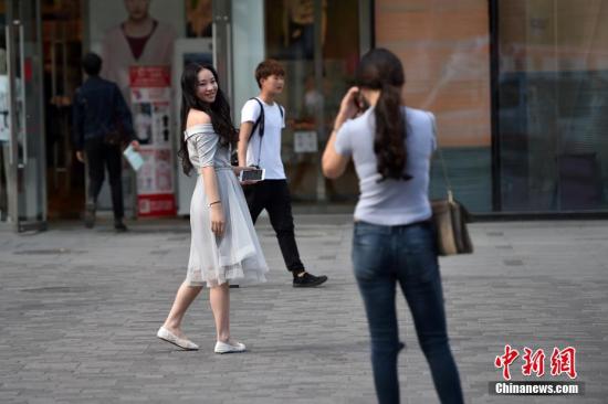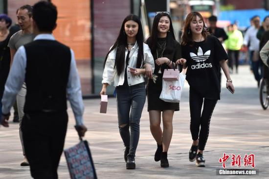 圖為北京三里屯街頭的姑娘小伙們換上夏裝出行。中新網記者 金碩 攝