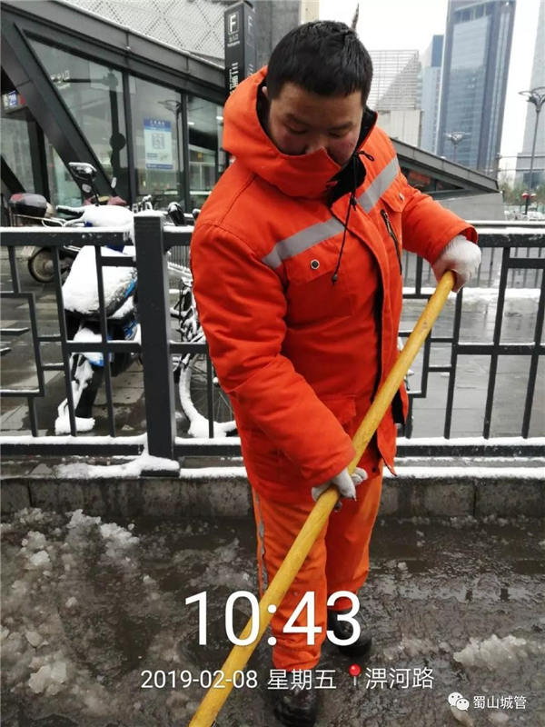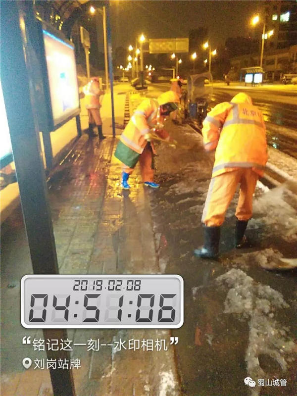 這個(gè)雪夜,環(huán)衛(wèi)橘和城管藍(lán)又是一夜無(wú)眠,他們奔走在合肥各個(gè)大街小巷,為市民的安全出行保駕護(hù)航。