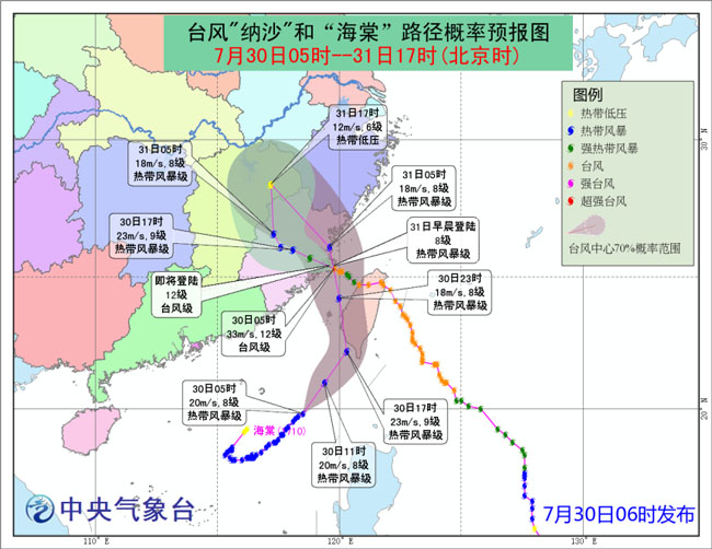 安徽省氣象臺(tái)今天上午11時(shí)發(fā)布預(yù)報(bào)稱(chēng),受第9號(hào)臺(tái)風(fēng)“納沙”和第10號(hào)臺(tái)風(fēng)“海棠”環(huán)流影響,7月31日—8月2日,安徽省將有明顯降水,明日起,持續(xù)的高溫天氣也將逐漸“退燒”,最高溫度跌至36℃左右。