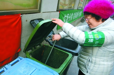 3日一大早,西城區(qū)大乘巷社區(qū)的垃圾分類引導員開始例行檢查分類情況。春節(jié)期間,大乘巷社區(qū)專門組織煙花炮竹垃圾分類志愿者,引導居民正確處理易燃物。記者 戴冰攝