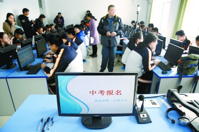 22日上午8時30分起至3月7日17時,今年中考生可登錄北京教育考試院網(wǎng)站進行中考報名。上午記者在北京市第二十四中學(xué)學(xué)生報名現(xiàn)場發(fā)現(xiàn),與往年不同的是,今年報名系統(tǒng)新增“綁定手機”環(huán)節(jié),考生可以隨時找回密碼;此外,今年系統(tǒng)新增“體育現(xiàn)場考試選項”,體育項目一經(jīng)選定在報名結(jié)束后不得修改。