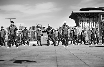 北京日報(bào)訊(記者 劉可)昨天15時(shí)許,伴隨著一組清新、活潑的和聲,百余名身著工服的環(huán)衛(wèi)工人手持掃把、便攜式簸箕,手推垃圾箱跳起了歡快的舞步。國內(nèi)首次由環(huán)衛(wèi)職工發(fā)起的主題“快閃”活動亮相奧林匹克公園中心區(qū),短短10分鐘的表演吸引了不少游客的駐足觀賞。
