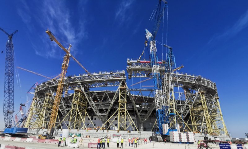 央廣網(wǎng)北京2月16日消息(記者郭淼)北京時(shí)間2月16日16:00,中國(guó)鐵建承建的2022年世界杯主體育場(chǎng)——盧賽爾體育場(chǎng)項(xiàng)目主體鋼結(jié)構(gòu)吊裝完成,建筑的“馬鞍形”外觀基本成型,實(shí)現(xiàn)重大施工節(jié)點(diǎn)突破。