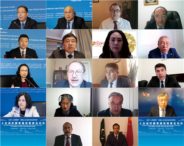 上合組織國(guó)家媒體智庫云論壇連線交流現(xiàn)場(chǎng)。 人民畫報(bào)社供圖