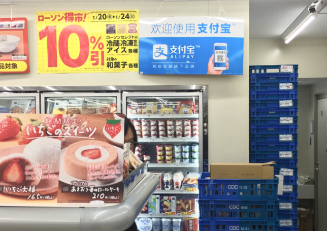 支付寶和日本羅森最早從去年開始合作,2016年1月,羅森位于成田機場的9家門店率先引入支付寶,此次則將范圍擴大都全國12839家羅森便利店。