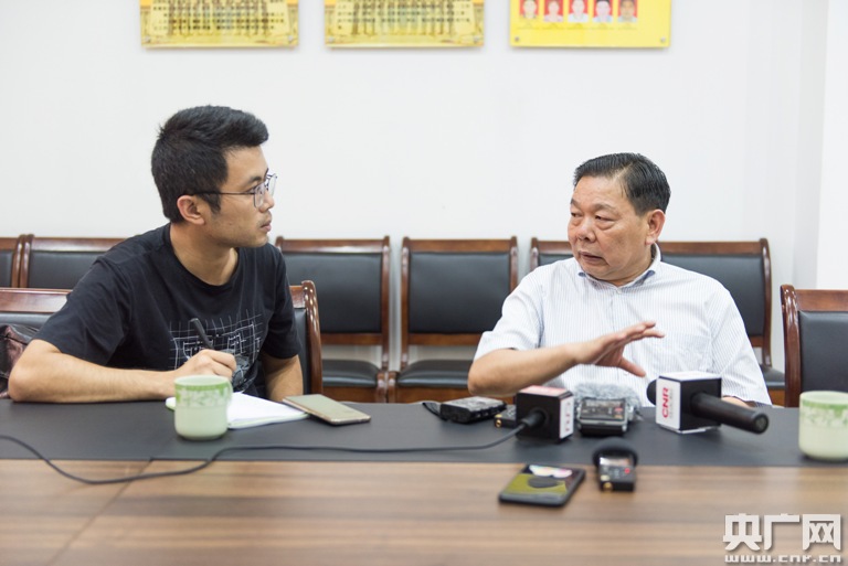 記者采訪紫南村黨委書記潘柱升(央廣網(wǎng)記者 官文清 攝)