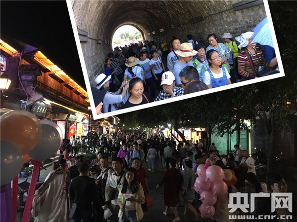 這兩天的大理古城,用摩肩接踵來形容,一點都不為過。古城的街道上,燒烤用的竹簽、食品包裝袋、礦泉水瓶等垃圾隨處可見。盡管沿途有交警指揮交通,但景區(qū)附近的道路還是嚴重擁堵,直到晚上11點半,古城附近的道路擁堵情況,才略微有所緩解。有司機向記者反映,“太堵了這兩天。昨天我拉了六個客人,從火車站走,回古城,一般都是一個小時就到,昨天走了五個多小時!