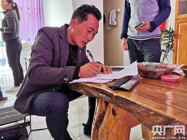 楊文忠在家里聯(lián)系工人(中央廣播電視總臺央廣記者 李騰飛 攝)