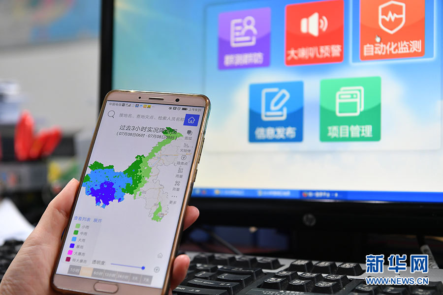 陳良斌、魏德勇、黃荀、向青松是重慶市南岸區(qū)僅有的四名地質(zhì)“體檢師”,每天上班的第一件事,便是通過手機查看當(dāng)?shù)氐慕涤昵闆r。同時,通過監(jiān)測系統(tǒng),了解當(dāng)?shù)刈钚碌娘L(fēng)險走向。新華網(wǎng)發(fā)(郭旭 攝)