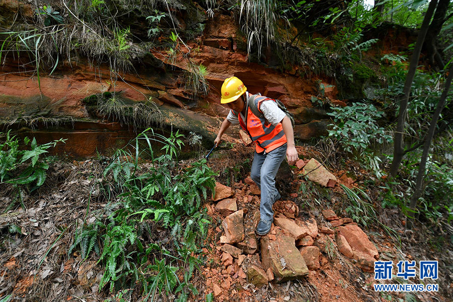 在汛期,每天地質(zhì)隊員們都要奔波在轄區(qū)的各個山體處,用雙腳走出對地質(zhì)情況的了然于心,也走出了一方百姓的平安。新華網(wǎng)發(fā)(郭旭 攝)
