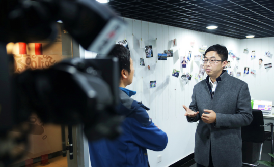 隨后央視記者來到武昌5.5創(chuàng)意產(chǎn)業(yè)園,對“找主播”平臺創(chuàng)始人尹春進行了采訪。雙方就直播行業(yè)2016年的爆發(fā)式增長現(xiàn)象以及2017年行業(yè)趨勢,還有直播行業(yè)的投機泡沫等問題做了詳盡的互動。