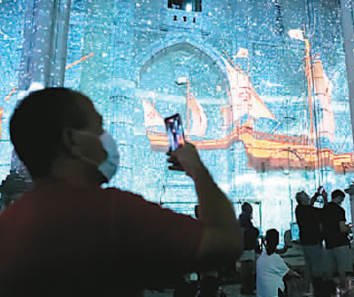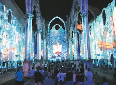 星空下的里斯本”聲光電體驗式藝術(shù)展近日亮相葡萄牙首都里斯本的卡爾莫教堂遺址,這項展覽利用多媒體影像展示,配以葡萄牙特色民族音樂,展現(xiàn)葡萄牙和里斯本豐富的歷史文化。