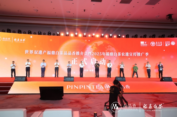 活動隨后還舉辦了2025年福鼎白茶農(nóng)遺宣傳推廣季啟動儀式,隨著“3、2、1”的倒數(shù)聲,12位領導嘉賓共同按下啟動鍵,現(xiàn)場掌聲雷動。按下的不僅是啟動鍵,更是雙遺白茶全球化的“加速鍵”——標志著福鼎白茶將以“人類非遺+全球農(nóng)遺”的雙重身份,系統(tǒng)性推進國際傳播:既通過文化推薦官講述雙遺故事,也依托行業(yè)協(xié)會推動品牌出海,更借助品品香等企業(yè)持續(xù)開拓的海外布局,讓雙遺白茶從太姥山下的地域特產(chǎn),成為全球消費者感知中國茶文化的“馨香名片”。