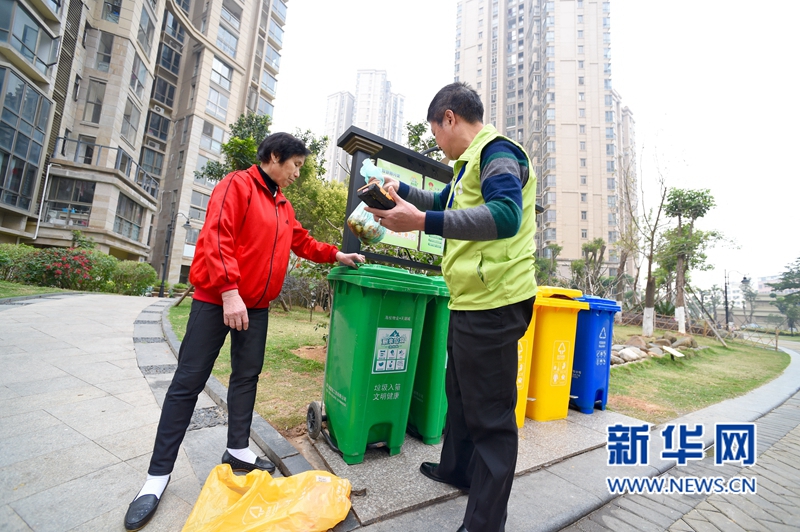 3月29日,廈門(mén)市垃圾分類(lèi)示范小區(qū)天湖城小區(qū)內(nèi),垃圾分類(lèi)督導(dǎo)員蘇永順(右)將邱彩仙阿姨送來(lái)的廚余分類(lèi)垃圾掃碼記錄后投入分類(lèi)垃圾箱。 新華社記者姜克紅攝 當(dāng)日,廈門(mén)市垃圾分類(lèi)示范小區(qū)海滄天湖城小區(qū)內(nèi),79歲的邱彩仙阿姨將一袋廚余垃圾投放至小區(qū)廚余垃圾分類(lèi)箱,隨后這袋垃圾被廚余垃圾專(zhuān)用車(chē)轉(zhuǎn)運(yùn)至廈門(mén)市垃圾分類(lèi)處理廠。在這里經(jīng)過(guò)流水線分揀后,其中剩菜剩飯等有機(jī)物被輸送至厭氧發(fā)酵間發(fā)酵產(chǎn)生甲烷氣體燃燒發(fā)電,而塑料、紙張等可燃垃圾被再次轉(zhuǎn)運(yùn)至附近的廈門(mén)后坑垃圾焚燒發(fā)電廠進(jìn)行焚燒發(fā)電。至此,邱阿姨這袋廚余分類(lèi)垃圾完成了“變身之旅”,被轉(zhuǎn)化為可利用的電能。 據(jù)了解,廈門(mén)目前日產(chǎn)各類(lèi)垃圾5000余噸,其中約1800余噸被用來(lái)焚燒發(fā)電,2600余噸被壓縮填埋,剩下的約600余噸廚余分類(lèi)垃圾被進(jìn)行生物質(zhì)能轉(zhuǎn)換再生利用。 近年來(lái),廈門(mén)市穩(wěn)步推進(jìn)垃圾分類(lèi)工作,正加快建立分類(lèi)投放、分類(lèi)收集、分類(lèi)運(yùn)輸、分類(lèi)處理的生活垃圾分類(lèi)處理系統(tǒng),并通過(guò)設(shè)立的19個(gè)垃圾分類(lèi)示范小區(qū)和學(xué)校垃圾分類(lèi)教育,宣傳垃圾分類(lèi)的重要性,提高全民參與熱情。 -