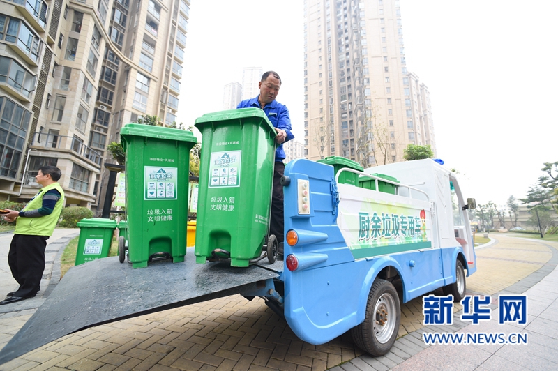 3月29日,廈門(mén)市天湖城小區(qū)保潔員楊永生在收集廚余分類(lèi)垃圾。 新華社記者姜克紅攝 -