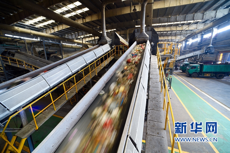 3月29日,廈門(mén)市垃圾分類(lèi)處理廠內(nèi)運(yùn)行中的垃圾分揀流水線。 新華社記者姜克紅攝 -