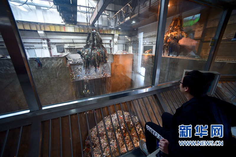 3月28日,廈門(mén)市后坑垃圾焚燒發(fā)電廠工人在操作儀器抓運(yùn)垃圾進(jìn)焚燒爐燃燒發(fā)電。 新華社記者姜克紅攝 -