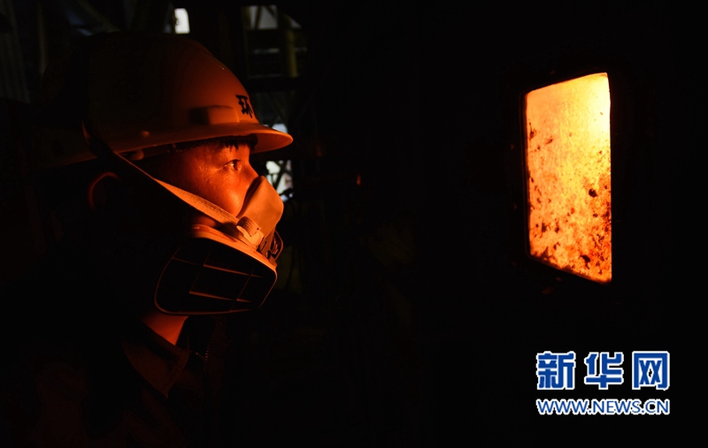 3月29日,廈門(mén)市后坑垃圾焚燒發(fā)電廠值班長(zhǎng)張祥潤(rùn)在觀察垃圾焚燒爐內(nèi)情況。 新華社記者姜克紅攝 -