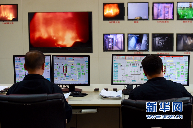 3月29日,廈門(mén)市后坑垃圾焚燒發(fā)電廠中央控制室工作人員在實(shí)時(shí)觀測(cè)記錄設(shè)備運(yùn)行情況。 新華社記者姜克紅攝 -