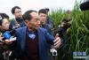 10月16日,袁隆平院士在湖南長沙縣金井鎮(zhèn)的“巨型稻”試驗田邊接受記者采訪。水稻長得比人高、畝產(chǎn)可達800千克以上--中國科學院亞熱帶農(nóng)業(yè)生態(tài)研究所10月16日正式發(fā)布一種水稻新種質(zhì),株高可達2.2米,具有高產(chǎn)、抗倒伏、抗病蟲害、耐淹澇等特點,被認為開啟了水稻研制的一扇新門。新華社記者李尕攝 -