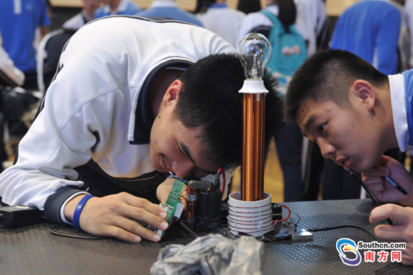 南方網(wǎng)訊 在自習(xí)課上如果說話聲太大,一款高分貝提醒器將作出“警示”;教室內(nèi)的溫度如果過高或過低,智能化空調(diào)將匹配調(diào)節(jié)……這些“神器”都出自深圳實(shí)驗(yàn)學(xué)校高中部學(xué)生之手,這里的高中生們善于對(duì)生活進(jìn)行觀察和思考,喜歡做小發(fā)明、小創(chuàng)造,并用動(dòng)手實(shí)踐將創(chuàng)意轉(zhuǎn)化為實(shí)物。而這與學(xué)校重視科技創(chuàng)新以及開發(fā)多層次、系統(tǒng)的科技創(chuàng)新課程、活動(dòng)密切相關(guān)。深圳實(shí)驗(yàn)學(xué)校高中部科技節(jié)日前落下帷幕,該校也首次對(duì)外系統(tǒng)介紹其科技創(chuàng)新實(shí)踐教育情況。