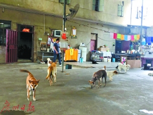 昨日上午許,在深圳市龍崗區(qū)園山街道環(huán)山路與陳屋路交叉口附近,記者找到了卓瑪夫婦收養(yǎng)流浪狗的破舊廠(chǎng)房。廠(chǎng)房約三層高,周邊用鐵絲網(wǎng)圍了起來(lái),門(mén)口掛著“阿哈拉救助站”的牌子。