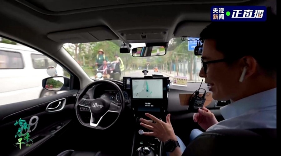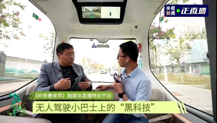 直播中,總臺(tái)記者走進(jìn)同時(shí)落地?zé)o人駕駛汽車和無人駕駛巴士的廣州生物島,使用手機(jī)軟件叫車,一路分享新鮮體驗(yàn)感受,并與自動(dòng)駕駛領(lǐng)軍企業(yè)文遠(yuǎn)知行首席運(yùn)營(yíng)官?gòu)埩痴劅o人駕駛技術(shù)里的“黑科技”。