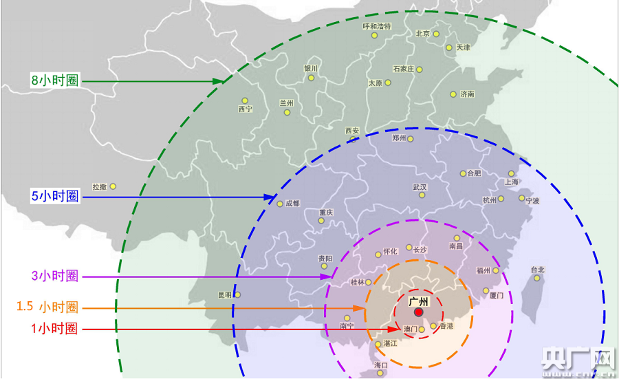 “3小時高速銜接上海、寧波、杭州等長三角地區(qū),強化廣州與東部沿海經(jīng)濟發(fā)展帶的聯(lián)動;5小時高速直連成渝、云貴、蘭新等西部內(nèi)陸地區(qū),強化廣州對西部內(nèi)陸腹地的輻射帶動!苯蚪榻B說。