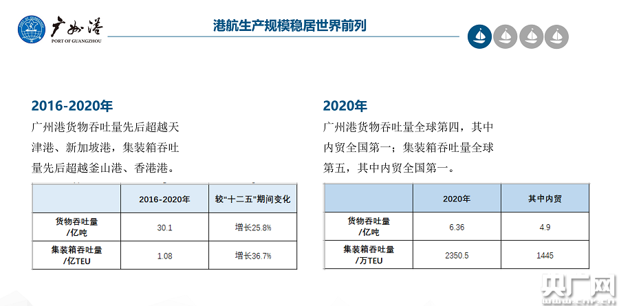 廣州港2016年-2020年港航規(guī)模情況。(央廣網(wǎng)發(fā) 廣州市港務局供圖)