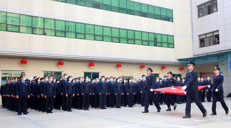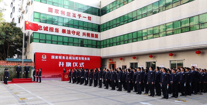 汕尾市稅務(wù)局舉行春節(jié)節(jié)后升旗儀式(央廣網(wǎng)發(fā) 汕尾市稅務(wù)局供圖)