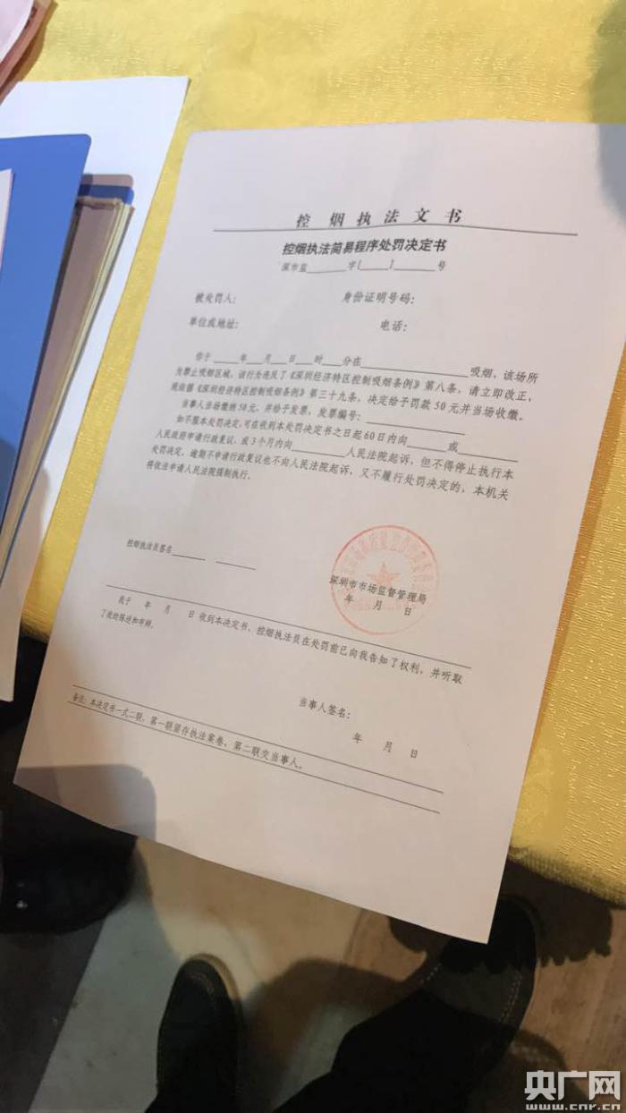 正當(dāng)大家都對(duì)抽查結(jié)果感到滿意時(shí)。突然間,前方一個(gè)叼著一支香煙的黑色背影引起了執(zhí)法人員的注意。執(zhí)法人員立馬上前制止并進(jìn)行懲戒教育。記者發(fā)現(xiàn),在這位先生的餐桌上擺放著香煙和打火機(jī)。面對(duì)執(zhí)法人員到來,這位先生懵住了,他連忙說:“自己是第一次(犯錯(cuò))。”一同吃飯的朋友也幫忙解釋道,這位先生今天剛到深圳不知道深圳有禁煙的規(guī)定。希望執(zhí)法人員能網(wǎng)開一面。記者問他們,吸煙的時(shí)候,餐館的經(jīng)營(yíng)人員有沒有過來進(jìn)行勸阻,他們說:“我們剛坐下,剛把煙拿出來,就被執(zhí)法人員發(fā)現(xiàn),服務(wù)員還來不及勸阻。”經(jīng)過執(zhí)法人員耐心地勸導(dǎo)教育,吸煙者最終“笑”著虛心接受教育以及50元處罰。