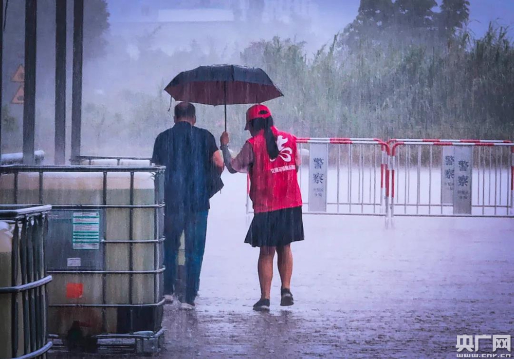 央廣網(wǎng)中山9月5日消息(記者張勝?gòu)?qiáng) 通訊員曾毅峰)暴雨中,一位梳著馬尾辮的志愿者姑娘撐傘扶送一位老人。雨傘微微向老人身上傾斜,姑娘的衣服、鞋子、帽子早已被雨水打濕。