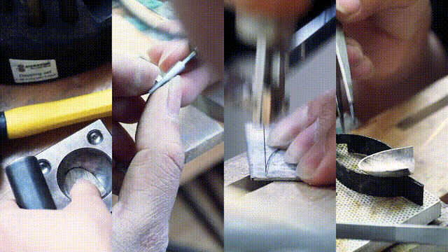 珠寶加工項(xiàng)目要用到上百種工具,通過(guò)反復(fù)地敲、挫、鋸、焊……最終打磨出一個(gè)精致的作品。