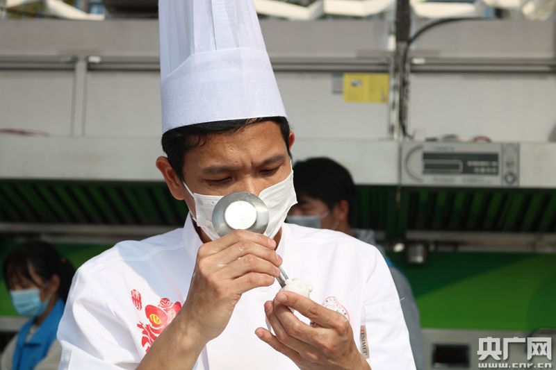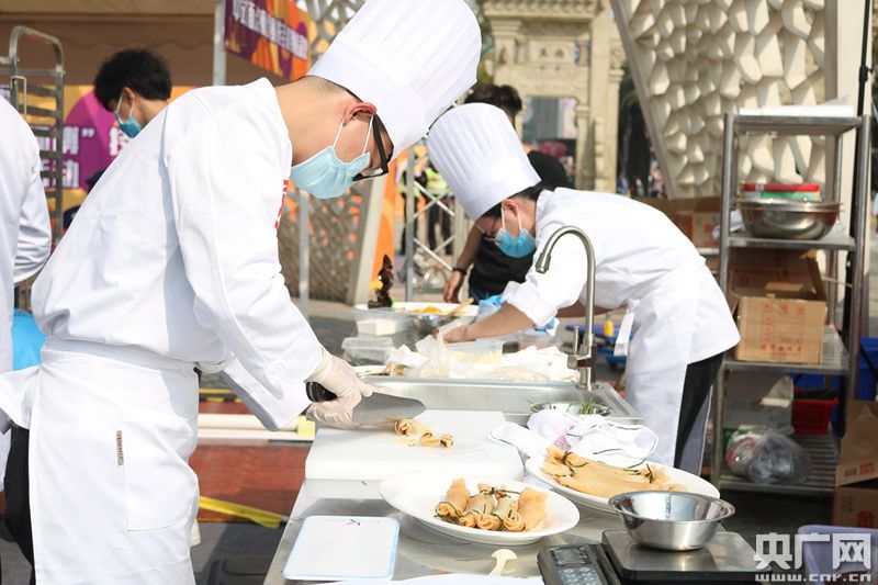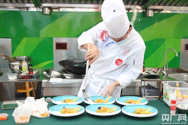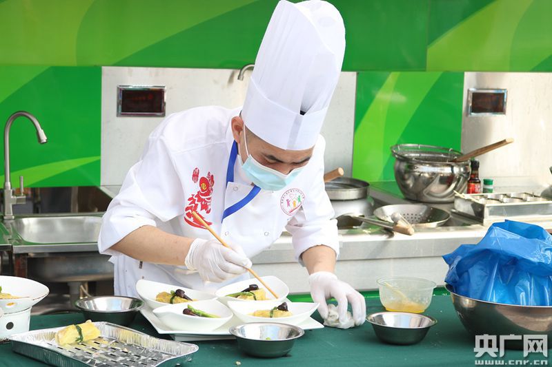 中烹競賽區(qū)大廚正在進(jìn)行菜品的最后完善。(央廣網(wǎng)記者 夏燕 攝)