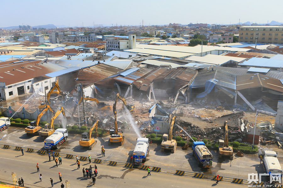 2月18日上午,容桂街道推進華口新基圍工業(yè)區(qū)低矮廠房拆除工作。(央廣網(wǎng)發(fā) 通訊員陳炳輝攝)