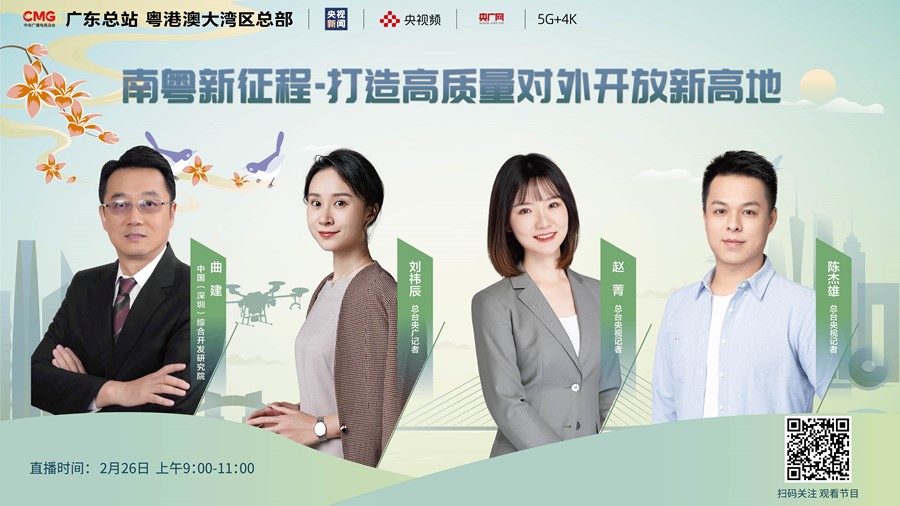 即日起至2月28日,中央廣播電視總臺廣東總站暨粵港澳大灣區(qū)總部推出六期融媒體直播特別節(jié)目《嶺南春來早》,通過央視新聞、央廣網(wǎng)、央視頻等總臺新媒體平臺,展現(xiàn)廣東在開局之年主動作為的奮戰(zhàn)場面。