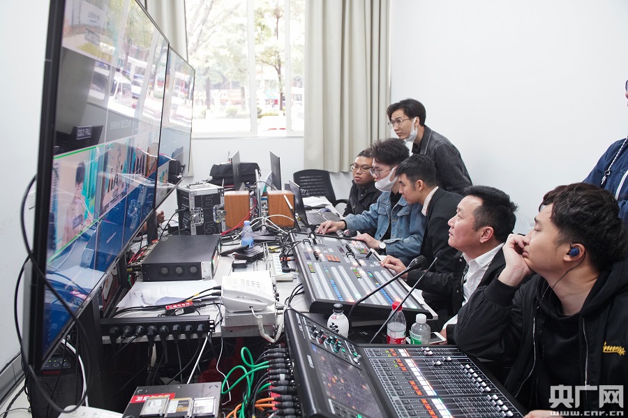 直播后方技術(shù)團隊。(央廣網(wǎng)記者 官文清 攝)