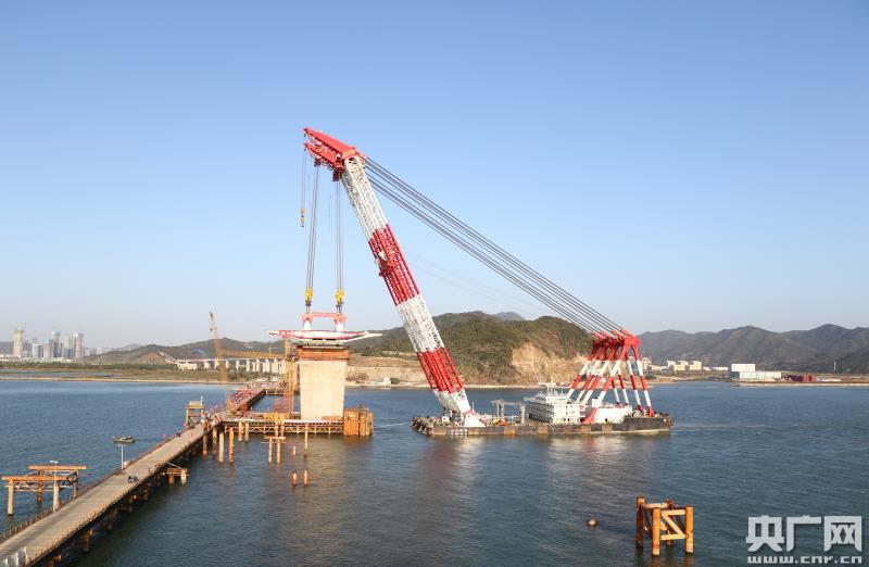 珠機(jī)城際金海特大橋首節(jié)段鋼梁架設(shè)成功。(央廣網(wǎng)發(fā) 通訊員供圖)