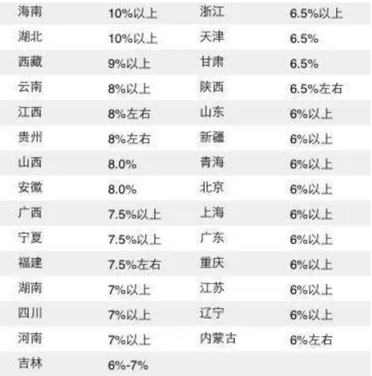 數(shù)據(jù)來源:各地統(tǒng)計局或政府工作報告