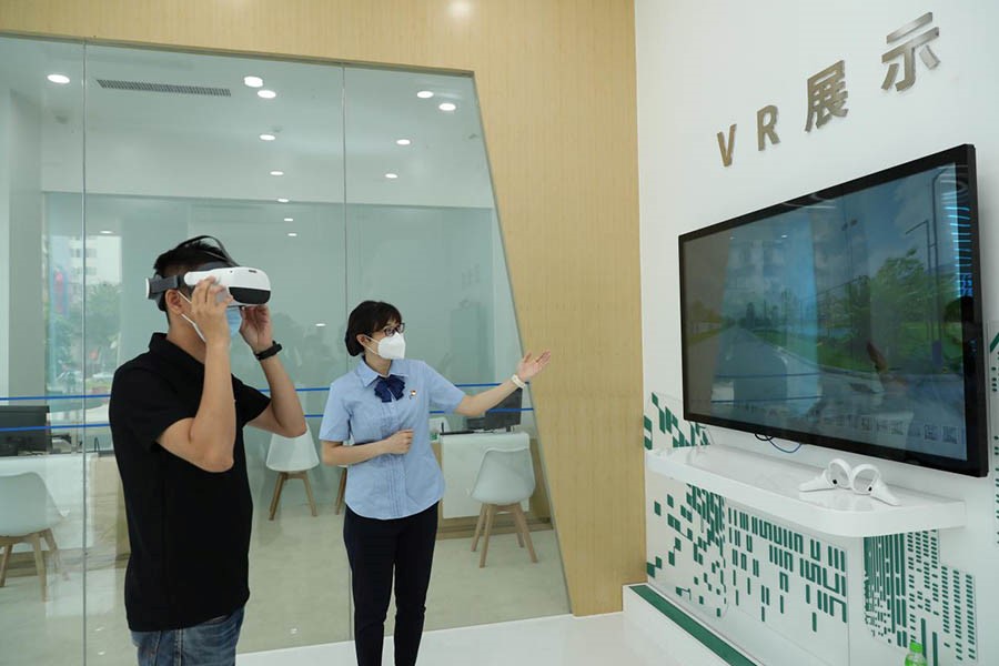 該服務(wù)廳設(shè)有互動體驗區(qū),市民可以通過VR虛擬現(xiàn)實技術(shù),觀看超濾膜凈水工藝的三維動態(tài)演示,體會水廠的智慧化生產(chǎn)全流程。此外,該服務(wù)廳還配有黨建品牌區(qū)、人工服務(wù)區(qū)、自助服務(wù)區(qū),村民在家門口就可辦理用水業(yè)務(wù)。