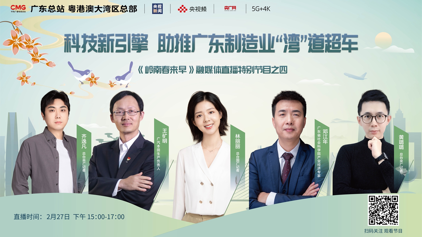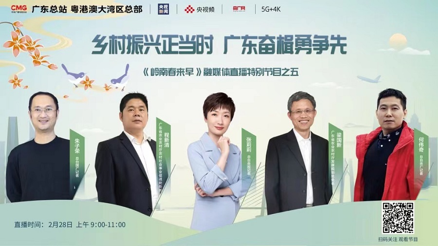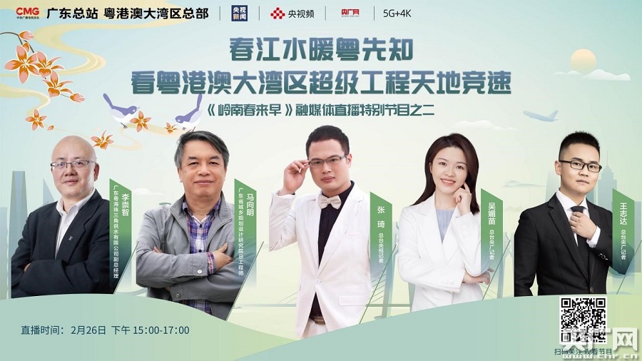 2月26日至2月28日,中央廣播電視總臺(tái)廣東總站暨粵港澳大灣區(qū)總部推出六期融媒體直播特別節(jié)目《嶺南春來早》,通過央視新聞、央廣網(wǎng)、央視頻等總臺(tái)新媒體平臺(tái),展現(xiàn)廣東在開局之年主動(dòng)作為的奮戰(zhàn)場(chǎng)面。