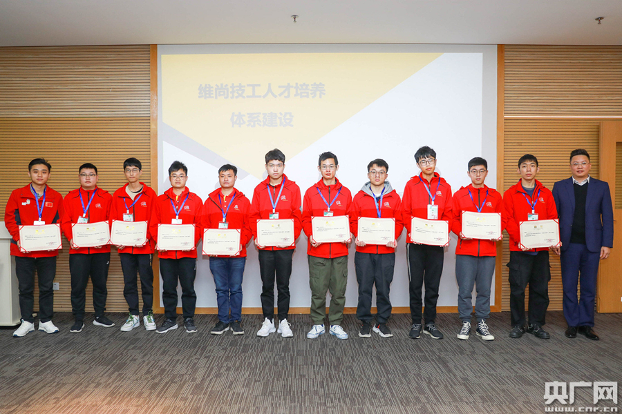 維尚向到訪的年輕工匠們頒發(fā)“高級技術(shù)顧問”聘書(央廣網(wǎng)發(fā))