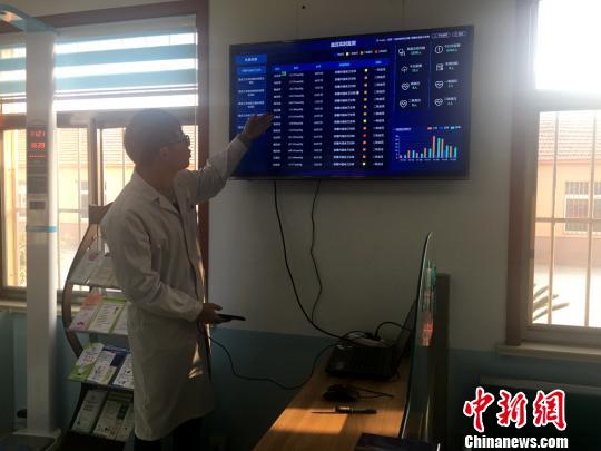 圖為當?shù)刂行拇逍l(wèi)生室里的信息化顯示屏,時時監(jiān)控周圍有慢性病的重點人群!±钣 攝