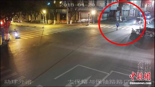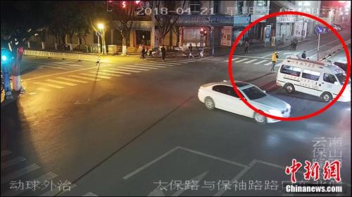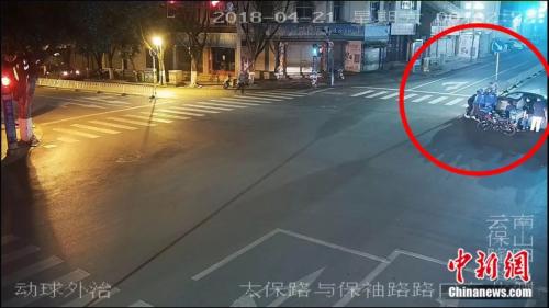 云南保山市交警支隊民警近日在調(diào)取一交通事故監(jiān)控時發(fā)現(xiàn)感人一幕。