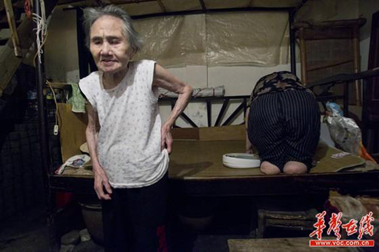 楊玉輝母女倆的家,隱藏在長(zhǎng)沙繁華都市深處。在幸福橋社區(qū)住了近一個(gè)世紀(jì)的家里,九旬老人王仲蓮60年如一日地照顧重殘“無(wú)腳女兒”楊玉輝,用言行踐行母親責(zé)任、用一生書寫母愛(ài)光輝。60年來(lái),王仲蓮的時(shí)間都是圍著女兒轉(zhuǎn)的,每天早晨,她起床第一件事就是幫女兒穿衣,洗臉,喂飯,圖為老人照顧女兒如廁,將坐便器放在床上。