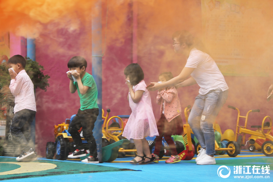 消防演練進幼兒園 萌娃體驗火災(zāi)逃生