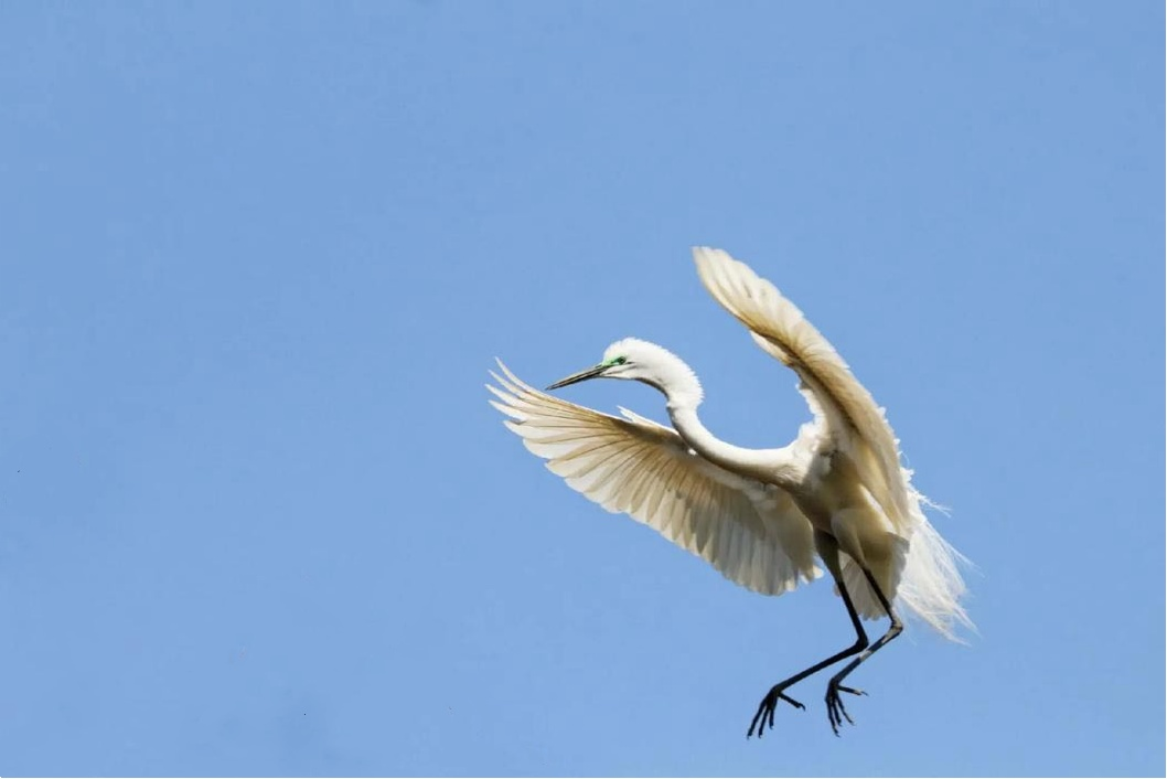 白鷺振翅飛翔(陳笑 攝)